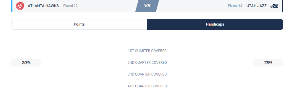 애틀 2쿼 핸디 20%     VS 유타 2쿼 75%           55%차이
