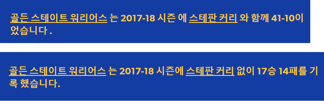 1718시즌에 커리가 출전시 41승 10패를 합니다.