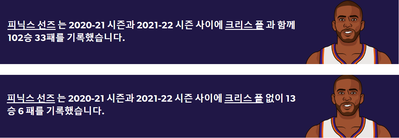 지난 두시즌 동안 크리스폴이 출전시   피닉스는 102승 33패를 기록하져.