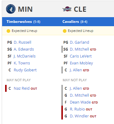 문제는 미첼과 알렌이 오늘 경기에서 GTD 인데....