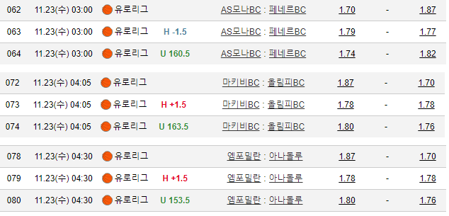 제가 건들고 싶은 경기는 바로 이 두경기인데 일단 위의 1.5핸디는 3경기고