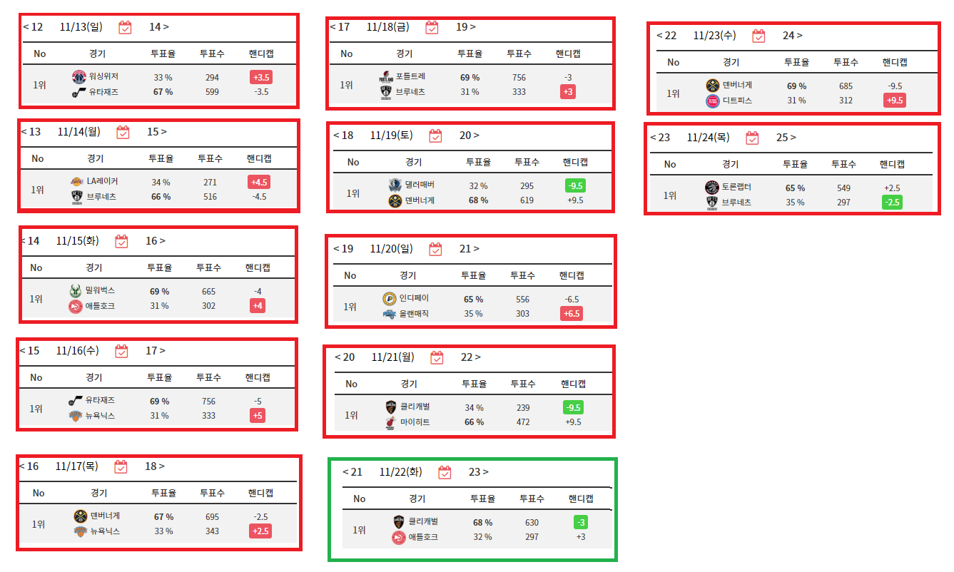 | 3 | 스포츠맨 | +231 | 216 % | 3 |