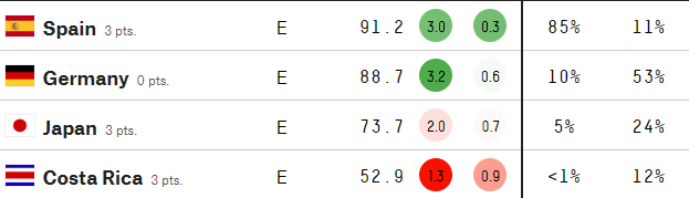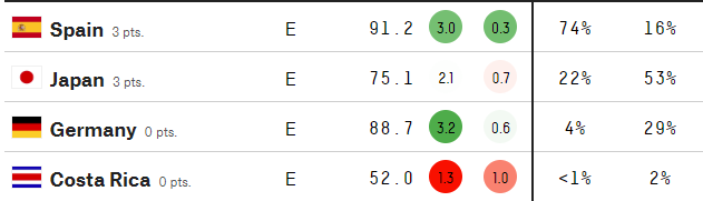 일본이 첫경기에서 독일을 잡으면서  조2위 확률이 상당히 높았는데