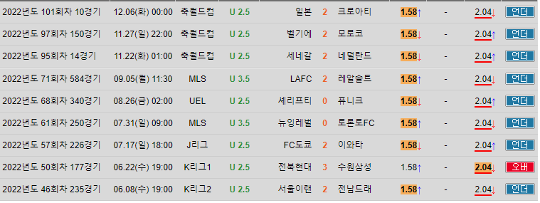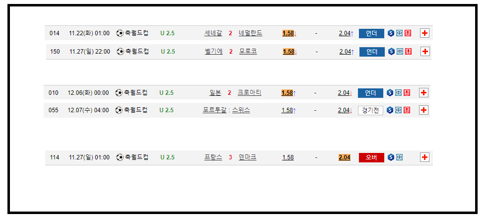 기본적으로 카타르 월드컵은 언더의 비중이 높습니다