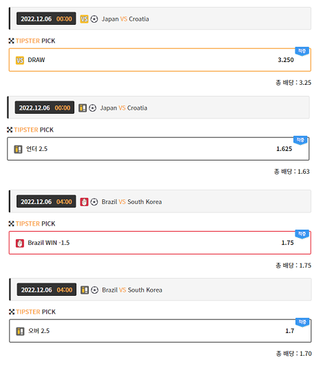 어제는 월드컵 2경기   승패언옵이 모두 맞은날인데
