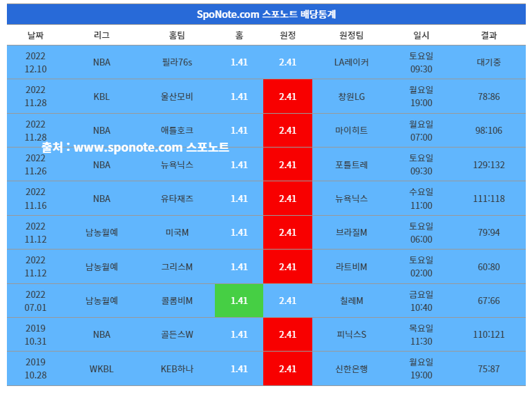그것도 최근 7경기 연속 2.41역배 ㄷㄷㄷ
