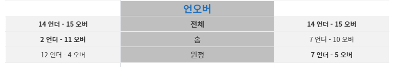 홈에서는 84.6%가 오버인데 ,  원정에서는 25%가 오버 입니다.