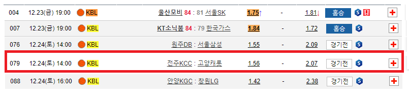 KBL 4번째 경기는   85-86-87 회차에  연속적으로 3번 정배가 나옵니다