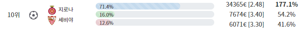 세비야는.....1위부터 10위까찌 팀들에게  1승 3무 6패를 했지만