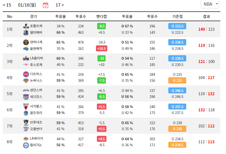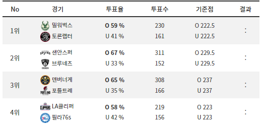 당연히 오늘 클리퍼스vs필라 경기에서의 언더가 1순위 이고