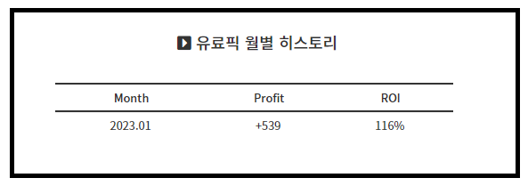 | 순위 | 이름 | 프로핏 | ROI | PICK |