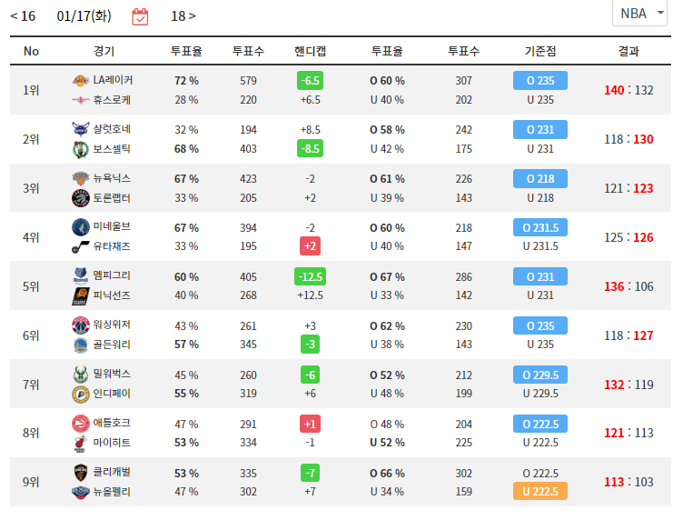 16일 경기들에서  커버스 상위부분 오버가 많았던거 같고 크게 특이사항 까지는 아닙니다.