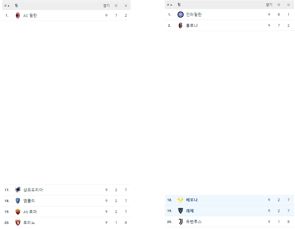 홈에서 오버가 제일 좋은팀은 밀란 이네요 .    7옵 2언