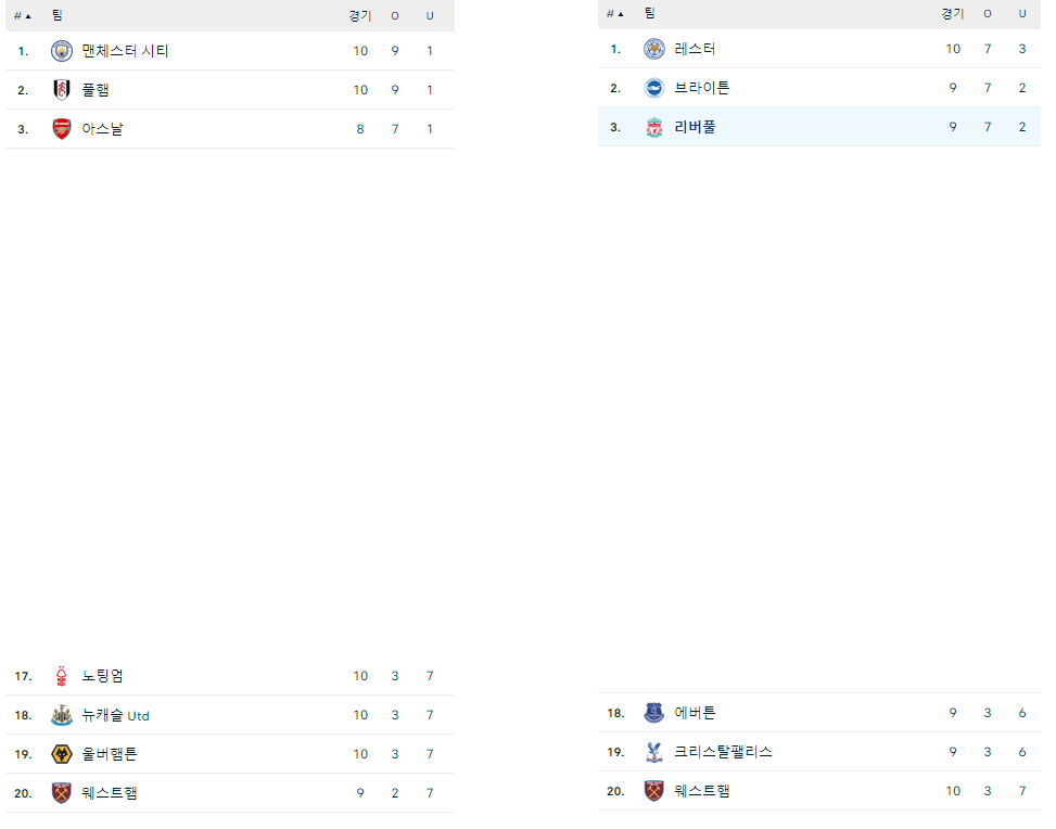 홈에서 오버가 많고, 언더가 많고......원정에서 오버가 많고....언더가 많은팀을