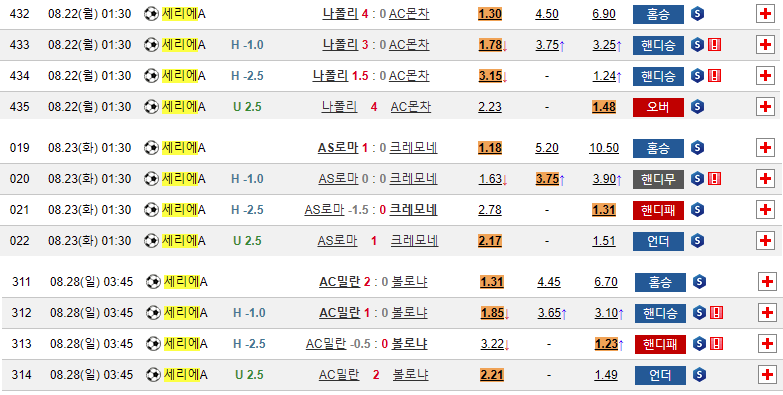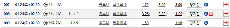 지금 이 볼로냐VS크레모네 의 경기의 배당상으로만 보면......