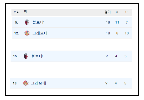 참고로 홈에서의 볼로냐가 현재 3연속 오버중 이긴한데.....