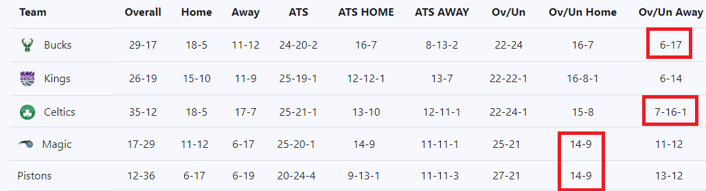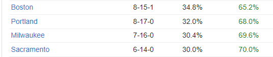 밀워키 하고 보스턴이 ......원정팀들 중에서는 가장 언더의 비율이 좋은팀인데.....