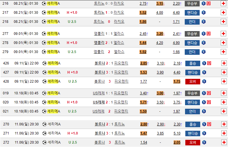 홈팀의 승 또는 무 ....가 예상되어 라치오플핸