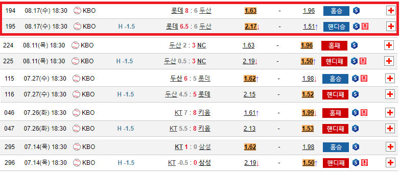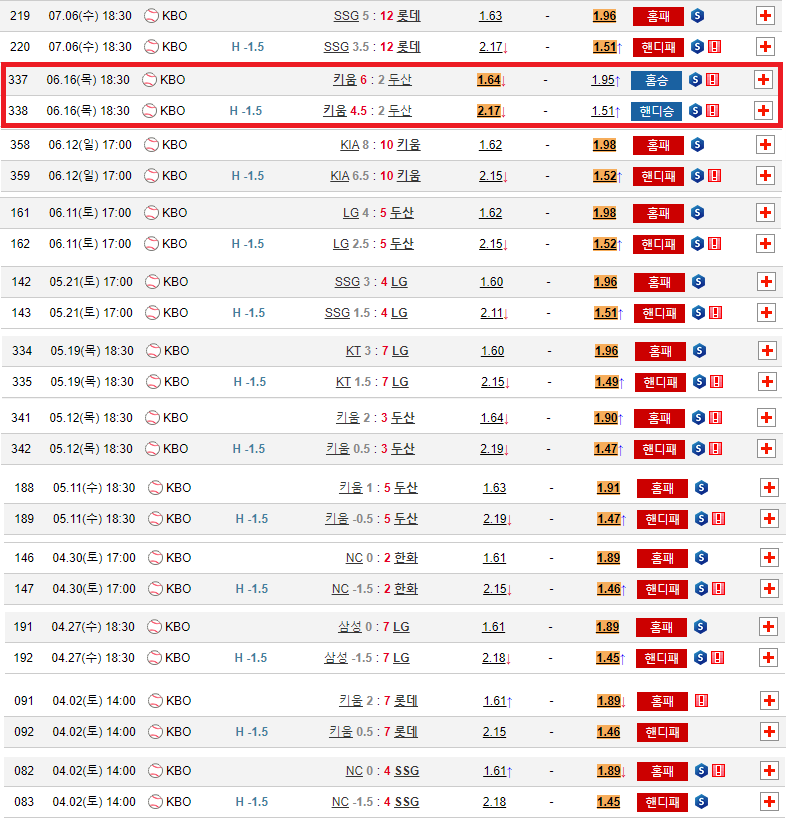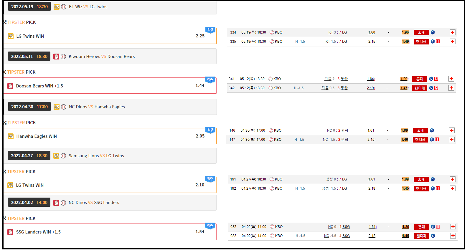 물론 역배가 아닌 플핸승으로 마무리된 경기들도 한둘 보이는것 같기는 한데