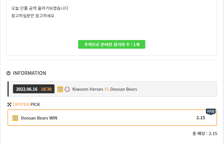 그리고 유료팁도 2경기가 아니라 1경기 단폴 입니다