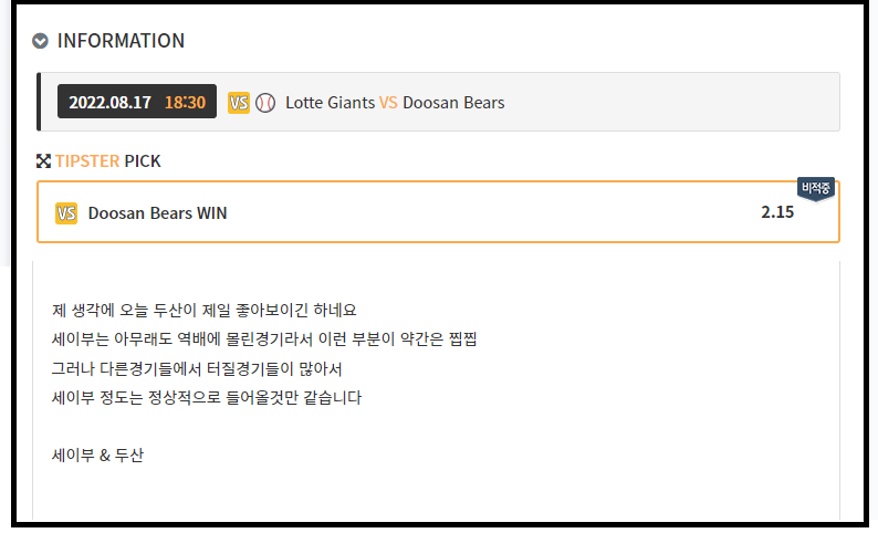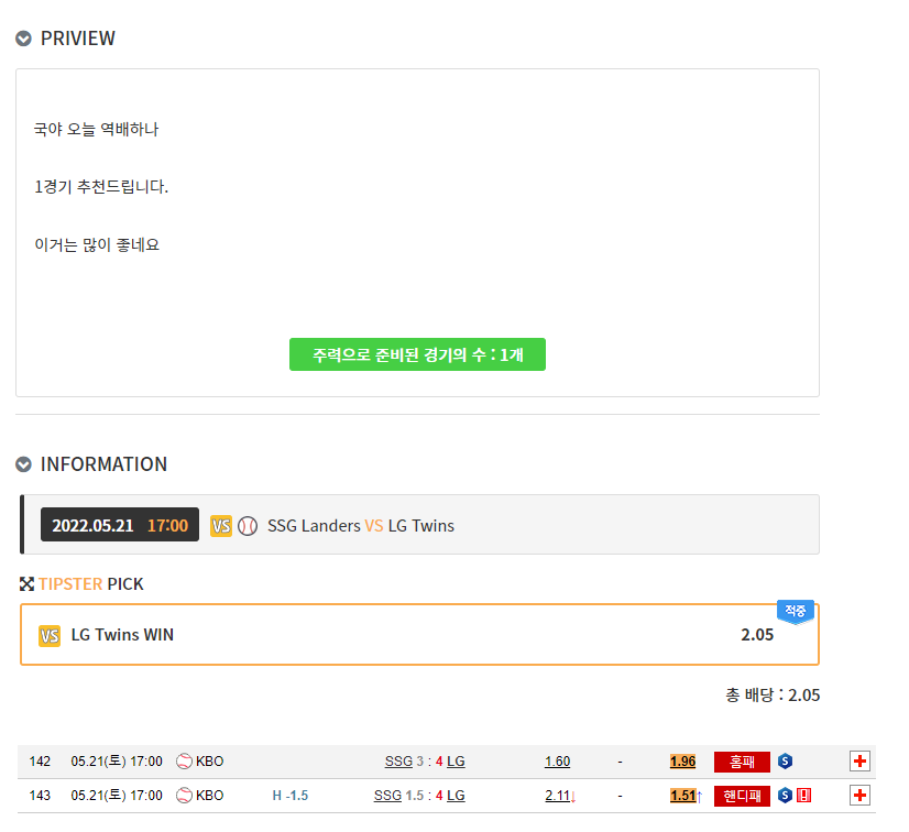 미리얘기하는데 배당은 2경기 2배 정도 입니다.
