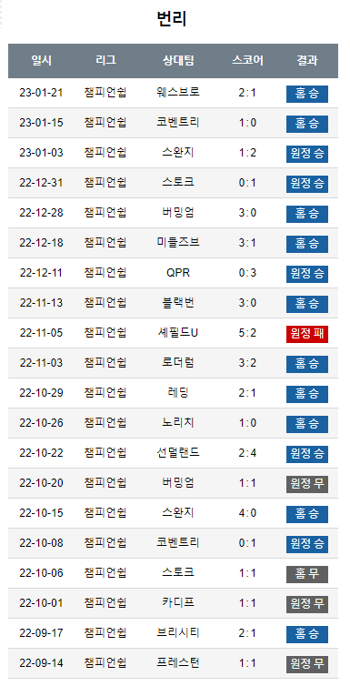 홈팀은 위에서 언급했지만  11경기에서  2승을 한팀입니다