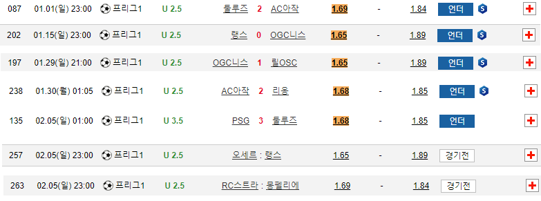 프랑스리그에서 언더의 배당이 1.6대 이면서   오버의 배당이 1.8대 일때.....