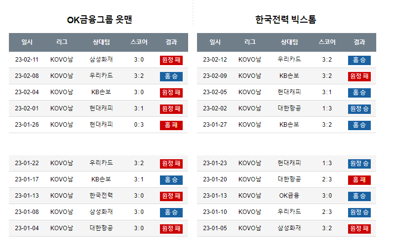 최근 5경기  옥금 1승 4패         한전 4승 1패