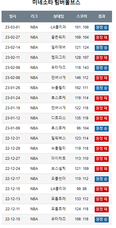 직전경기 승리한 미네소타......... 패배타이밍 이라 봄.