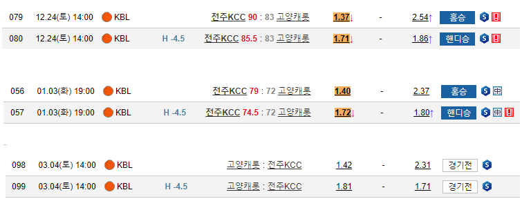Goyang Carrot Jumpers WIN -3.5 총 배당 : 2.85