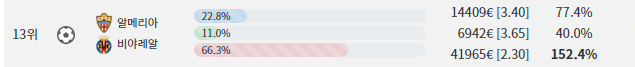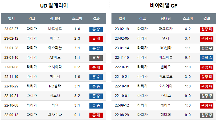 알메 VS 비야 경기에서   양팀의 맞대결에서 최근 19경기