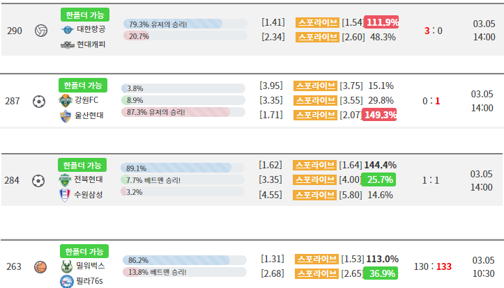 울산현대 87% 사람들이 구매했고 저도 맞췄고 대부분의 배터들도 적중했습니다