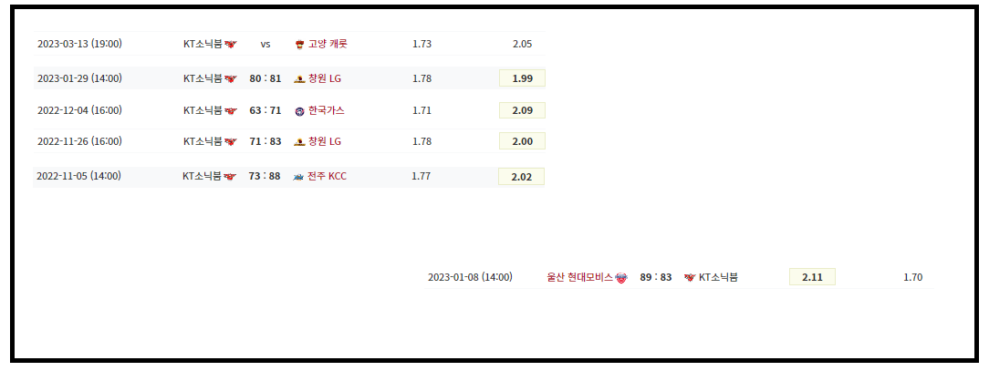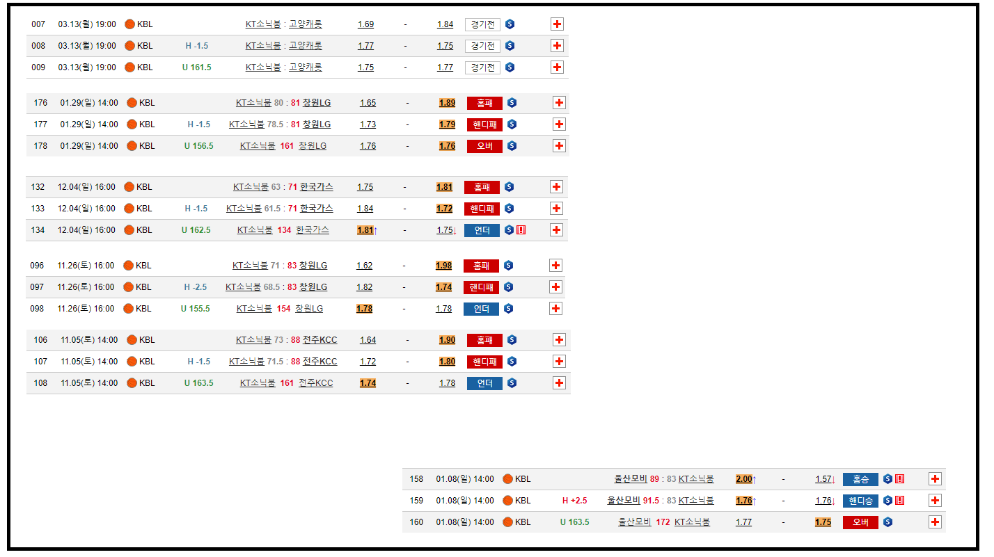 대체적으로 역배+언더 가 많이 뜬거같고 최근에는 역배+오버 가 두번연속 떴네요