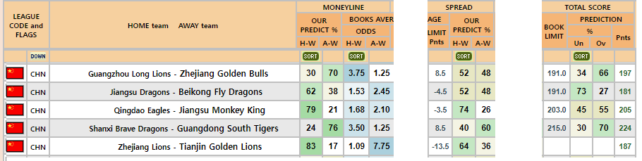 Zhejiang Guangsha Lions WIN 총 배당 : 2.03