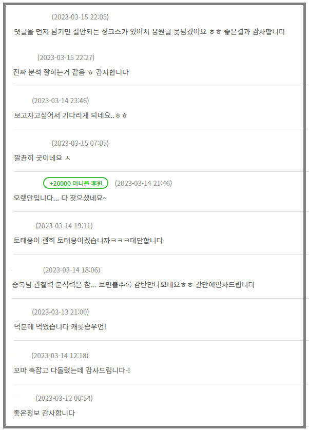 여러분들의 격려와 응원 덕분에 좋은성적을 이어가고 있는거 같습니다.