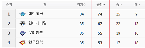 항공의 의지와는 다르게  우카VS한전의 준플옵은 열리게 됩니다