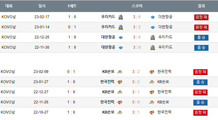 풀세트가 많은팀들이기도 하고 여차저차  항공의 3-2승 같다