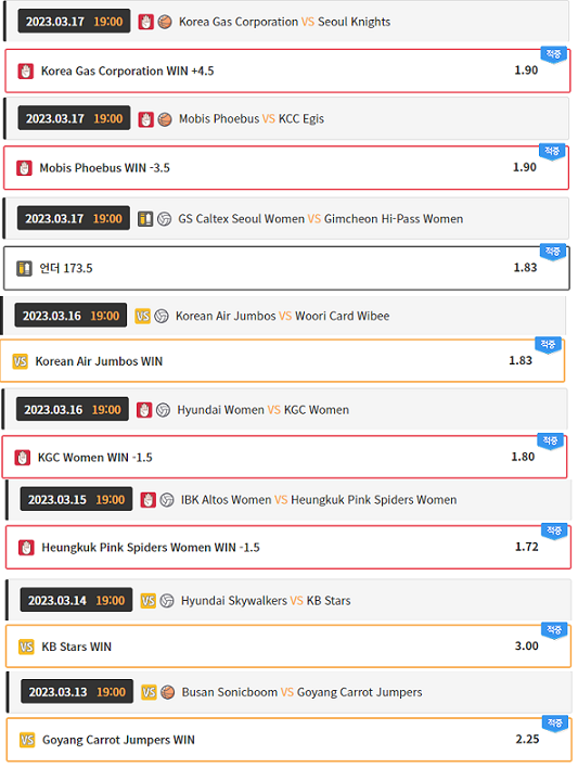 Hyundai Skywalkers WIN +1.5 총 배당 : 2.86