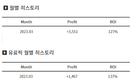 | 1 | 마고맨 | +353 | 276 % | 4 |