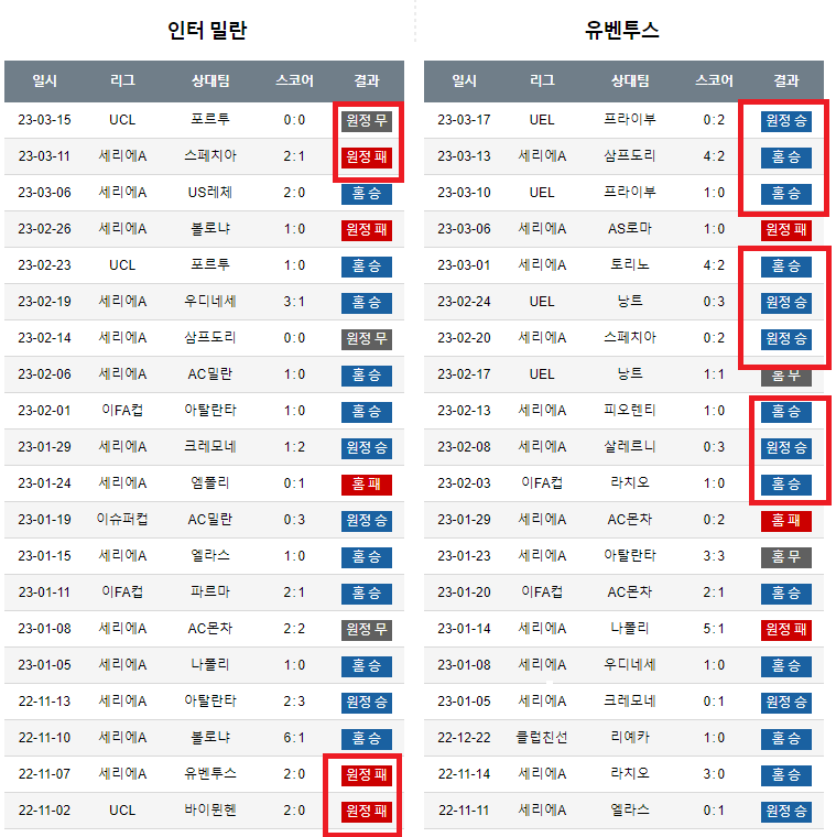 그러나 인테르와 유베는 정상적으로 그래도 홈팀의 승률이 조금 높습니다