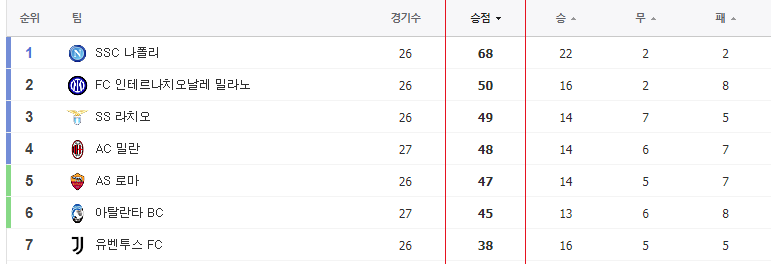 나폴리.인테르.라치오.밀란.로마.아탈.유베...... 해당 7팀이 현존하는 세리아의 뉴7공주 라 볼수있는데