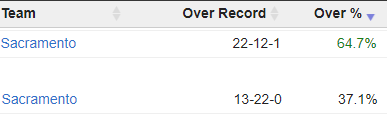 그 어떤 누구도 새크가 홈에서 오버 최상위권이고 , 원정에서 언더 최상위권 이라는