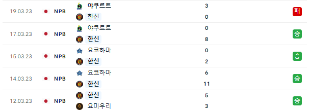 한신이 4연승을 하고 야쿠르트를 상대로 5연승를 도전할때 처럼