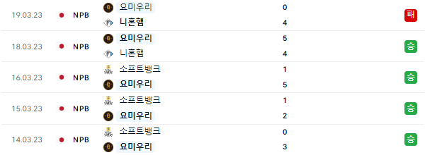 올시즌 NPB 에서 프리시즌 기간때 요미우리가 3월 14일부터 19일까지 4연승을 하다