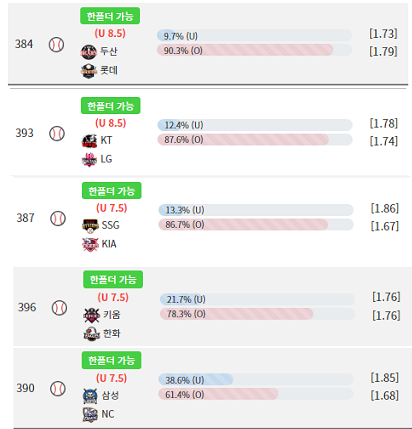 금일 SSG , 두산 , KT 승(마핸)은 배제하였습니다.