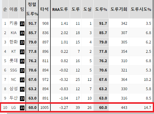 현재   LG의 도루시도는    팀에게 악영향 입니다
