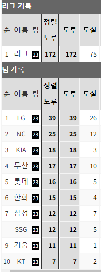 도루성공이  39번     실패가   26번