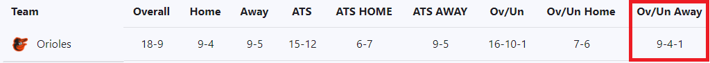 원정에서 오버의 빈도가 높은 볼티모어 입니다