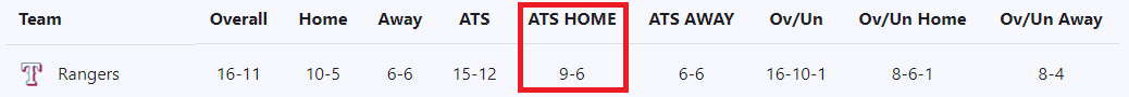 홈핸디에서  승률이 높은팀중 하나는 텍사스 입니다