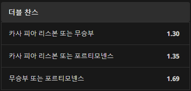 카사피아 리스본 또는 포르티모넨스     1.35배당 입니다